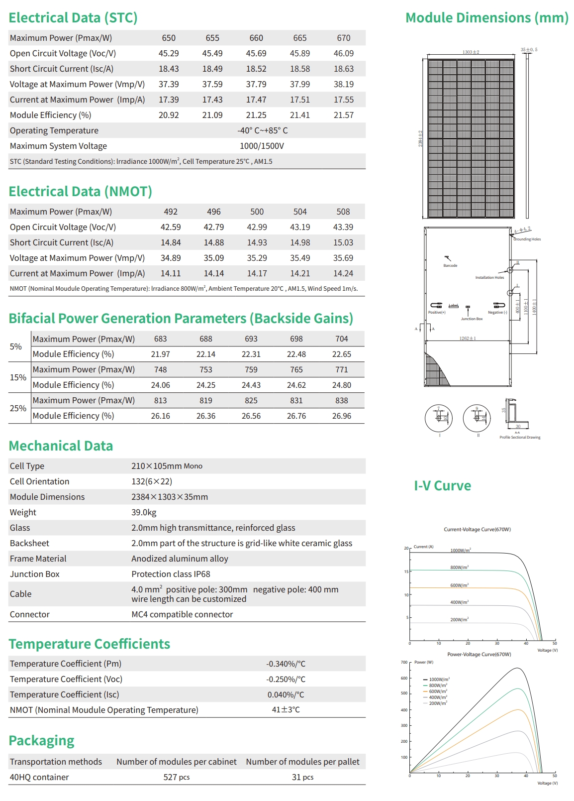 Low hot-spot risk: The next-generation cell technology and optimized circuit design adopted can support improved temperature coefficient and better hotspot resistance.