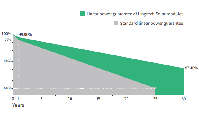 Low Power Degradation: First year power degradation <1.0%,year 2-30 power degradation