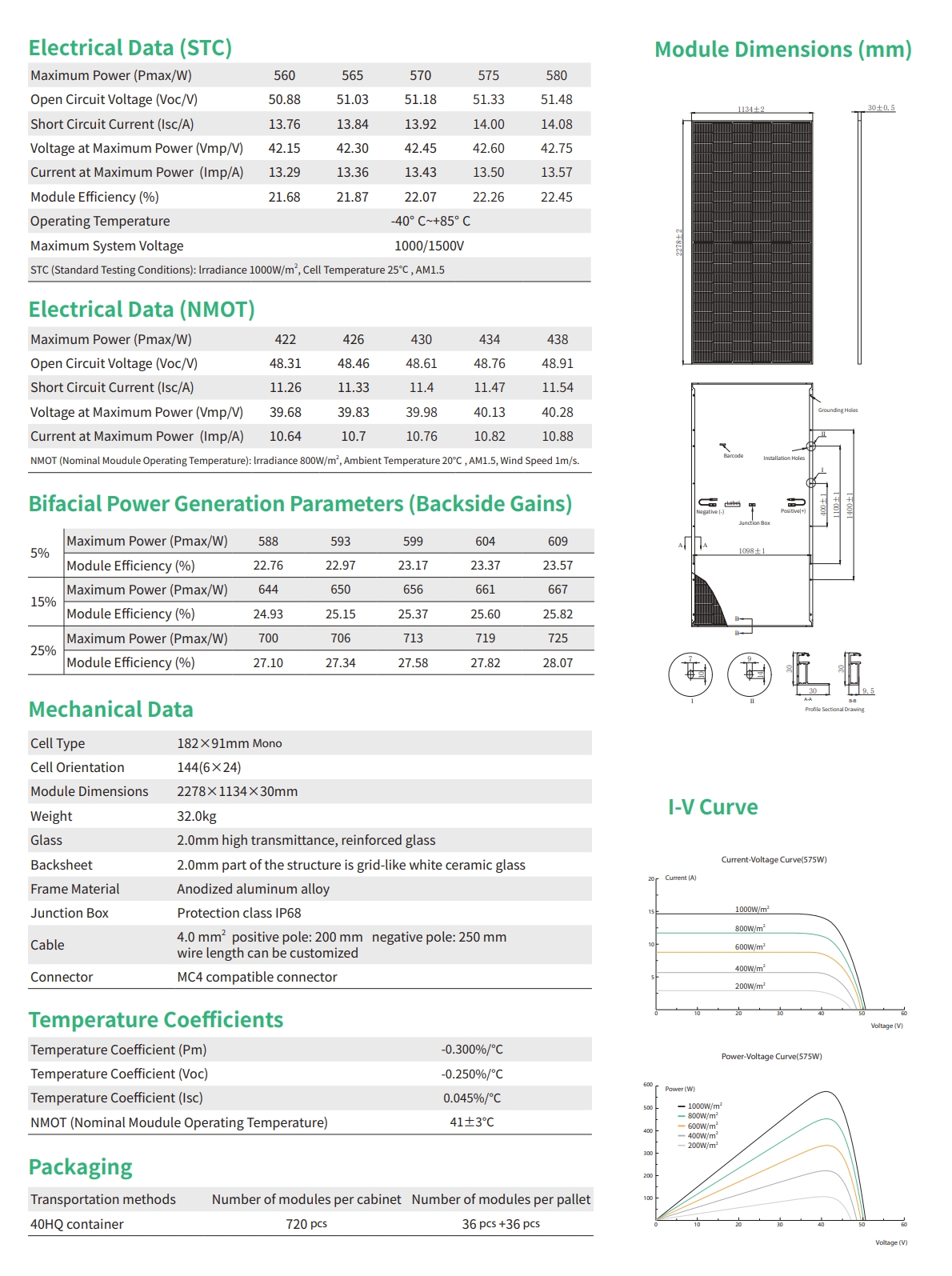 High Power Output: N-type MBB half cut technology, improve energy density, bring higher power output. High Bifacial Factor, up to 25% extra power generation.